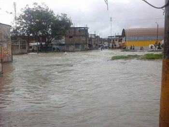 Canal Vía de Sullana desbordó e inundó Mercado Modelo y Hospital de Solidaridad