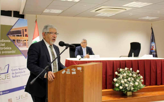 ERP. El Juez Supremo Héctor Lama More presidente de la Comisión de Trabajo del Expediente Judicial Electrónico y del Equipo Técnico saludó y felicitó a los jueces y al Presidente de la Corte de Sullana por su compromiso y sobre todo por los proyectos que vienen impulsando y lo hará durante estos dos años, como es la digitalización de los procesos de todas las especialidades.