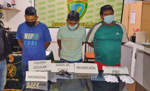 ERP. Tres sujetos fueron intervenidos y detenidos por la Policía Nacional del Perú a través de personal de inteligencia y Grupo Terna, quienes serían integrantes de la banda delincuencial “Los intocables” que operarían en la provincia de Sullana. Se trata de Juan Carlos Sánchez Pulache (36), alías “Rampiño”; José Alex Pacherrez Zapata (41) alias “El gordo” y Julio Octavio Sánchez Pulache (37) alias “Tavo”.