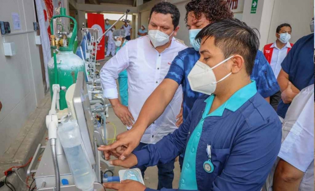 ERP. Con el objetivo de seguir haciendo frente al Covid-19, el gobernador regional de Piura Servando García Correa supervisó la implementación de la Unidad de Alto Flujo en el hospital de contingencia Virgen de Fátima, del estadio Campeones del 36 de Sullana.