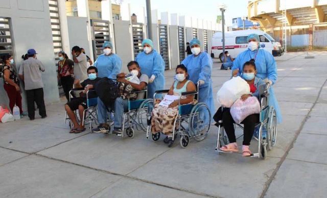 ERP. Gracias al tratamiento aplicado por los especialistas del hospital de contingencia Virgen de Fátima, del estadio Campeones del 36, en corto tiempo cinco pacientes vencieron al coronavirus y ya están de vuelta en sus casas, donde sus familiares los esperan para ayudarlos a culminar con su recuperación.