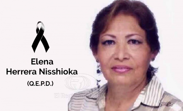 ERP. El día de hoy falleció en Lima, a la edad de 72 años, la poetisa sullanera, Elena Herrera Nisshioka, dama vinculada al quehacer cultural en la Perla del Chira, y en la Capital de la República, causando hondo pesar entre sus familiares y amigos.