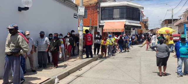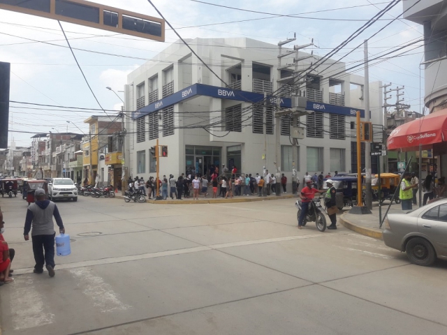 ERP. Nuevamente el problema de siempre. Decenas de ciudadanos decidieron pernoctar en los exteriores del Banco de la Nación de Sullana para cobrar su bono u otras percepciones que se canalizan por esta entidad financiera; sin embargo, el desorden y caos fue la nota constante de este viernes. No solo son las largas colas, sino también los vendedores de turnos que se aprovechan de la urgencia de la gente.