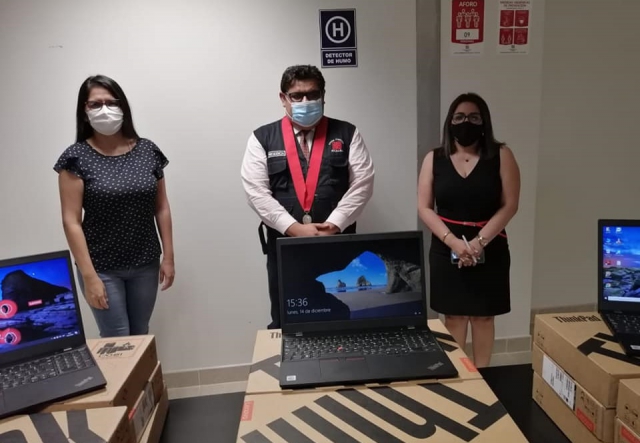 ERP. Continúan las acciones de fortalecimiento de los órganos jurisdiccionales y esta vez, el Presidente de la Corte Superior de Justicia de Sullana, Jorge Alva Inga hizo entrega de las 21 laptop para los Jueces y Juezas de los órganos jurisdiccionales de la especialidad penal.