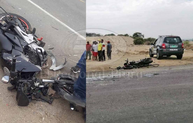 ERP. Dos obreros de una empresa agroindustrial resultaron gravemente heridos al colisionar con un auto en la vía entre Sullana y Paita. El hecho se registró esta mañana a la altura de la localidad de Macacará, cuando la motocicleta negra fue embestida por el otro vehículo.