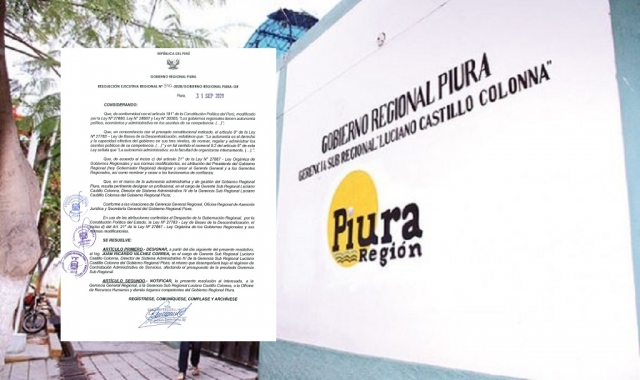 ERP. La subregión de obras Luciano Castillo Colonna con sede en la ciudad de Sullana y dependiente del Gobierno Regional de Piura tiene nuevo gerente; se trata del Ing. Juan Ricardo Vilchez Correa, quien reemplazará en el cargo a Fernando Ruidiaz Ojeda.