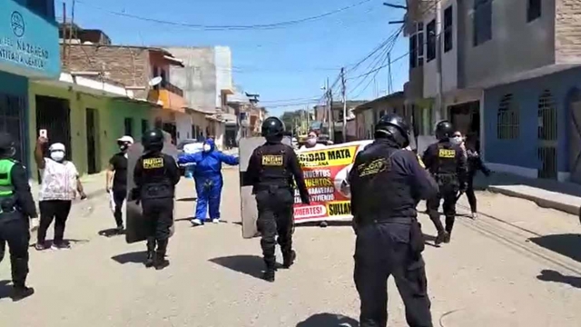 ERP. Un grupo de indignados sullaneros se congregaron en los exteriores del Estadio Municipal Campeones del 36 de Sullana, donde se ubicará la Unidad Covid-19, instancia de contención para casos positivos, para protestar y reclamar un mejor trato para esta provincia, la misma que se encuentra perjudicada por el centralismo piurano. Efectivos policiales trataron de alejarlas del lugar, pero los vítores y reclamos por sus difuntos se hicieron sentir.