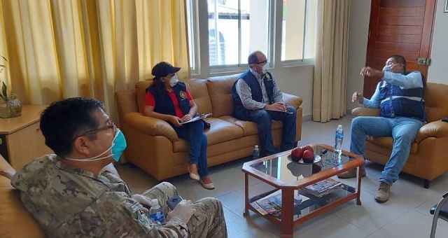 ERP. Los fiscales de Prevención del Delito se reunieron con el alcalde de Sullana Power Saldaña y el jefe de la Primera Brigada de Caballería de Sullana, Comandante General E.P. Max Marín Lira para coordinar diversas acciones en la provincia de Sullana frente a la declaratoria de emergencia para evitar la propagación del Covid-19.