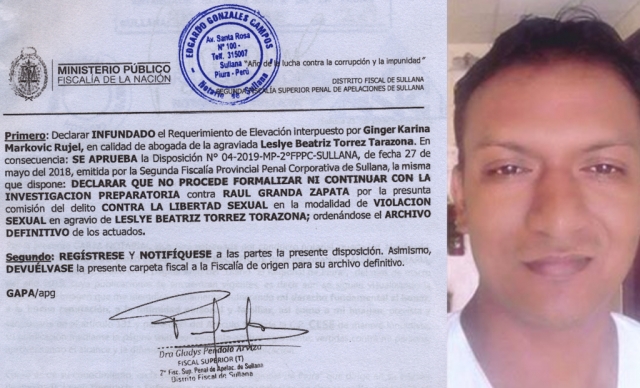 ERP. El Ministerio Público decidió archivar la denuncia por el caso de Violación Sexual hecha por una joven contra el técnico en enfermería Raúl Granda Zapata ocurrido en el distrito de Querecotillo en Sullana.