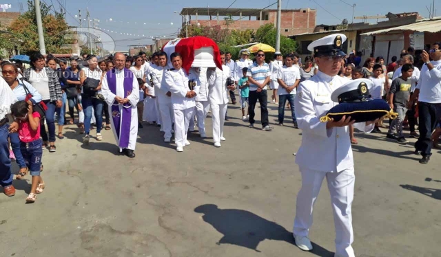 ERP. Los restos mortales del Oficial de Mar Edwin Chira Reyes, quien falleciera tras sufrir la volcadura de uno de los vehículos que transportaba personal militar integrante de la Compañía de Ingeniería Perú desplegado en la Misión de Estabilización de las Naciones Unidas en la República Centroafricana – MINUSCA, llegaron hoy a su natal Sullana.