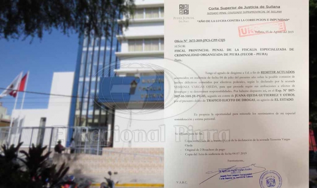 ERP. Juzgado remite actuados a Fiscalía de Crimen Organizado.Grave acusación. Cuando la vendedora de droga, Jesenia Vargas Ojeda fue intervenida durante un megaoperativo en agosto de 2017 en la provincia de Sullana, las autoridades no imaginaron que sindicaría a seis suboficiales de la Policía Nacional asegurando que trabajaba para ellos en la venta de estupefacientes, e incluso le alertaban de las intervenciones para evadir a la justicia y continuar con este ilícito negocio.