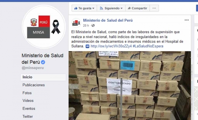 ERP. De acuerdo a la información proporcionada por el Ministerio de Salud, respecto a medicamentos e insumos médicos hallados de manera irregular en Hospital de Sullana, un vocero de esta Entidad se comunicó con este medio para precisar que el lugar encontrado no corresponde a dicho nosocomio y dejó traslucir que sería de otra instancia dependiente de la Dirección Subregional de Salud con sede en esta ciudad.