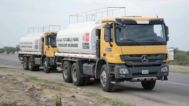 ERP. Por medio de tres cisternas cedidas en calidad de préstamo por el Organismo Técnico de Administración de los Servicios de Saneamiento (OTASS), la EPS Grau reforzó hoy el abastecimiento a las zonas afectadas por el corte de servicio de agua potable en Sullana.