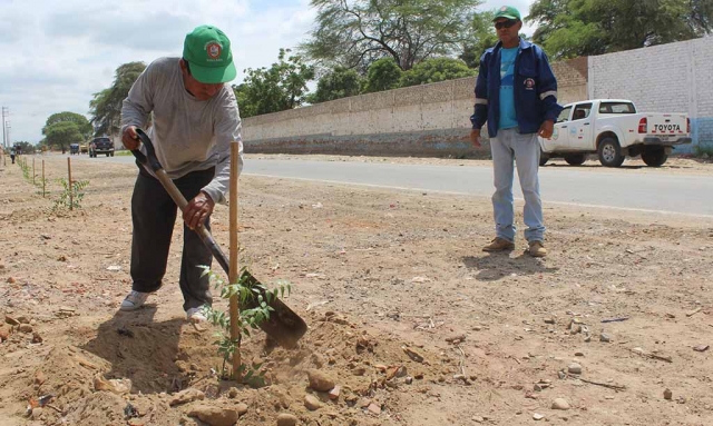 ERP. Donde antes eran puntos críticos de residuos sólidos, la Municipalidad de Sullana, a través de la gerencia de Gestión Ambiental inició el sembrado de árboles con el objetivo que los malos vecinos no vuelvan a ensuciar.