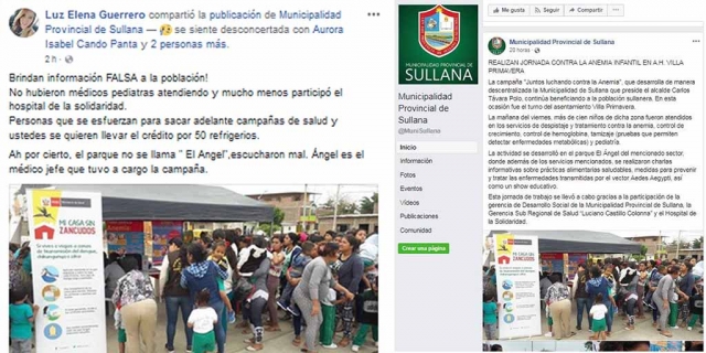 ERP. No se debe perturbar trabajo interinstitucional. En Sullana se viene llevando a cabo la campaña “Juntos luchando contra la Anemia” impulsada por el Comité Multisectorial de Salud. Dicho comité lo preside la Municipalidad de Sullana y lo integran la Sub Región de Salud “Luciano Castillo Colonna”, el Hospital de la Solidaridad, el Ministerio de Justicia y Derechos Humanos, Parroquia, Fiscalía, Ugel Sullana, Beneficencia Pública, entre otras.