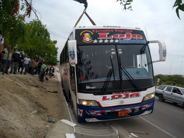 ERP. Un ómnibus procedente del Ecuador y con destino a Piura, quedó atrapado en una alcantarilla o sardinel construido a la margen derecha de la vía Panamericana, con la finalidad de canalizar las aguas de lluvia y proteger la infraestructura. El peso del vehículo al posicionarse en la endeble estructura hizo que se inclinara peligrosamente con posibilidad incluido de voltearse.