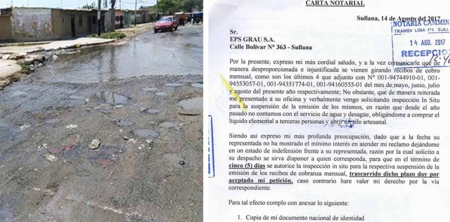 ERP. Los vecinos del asentamiento humano 9 de Octubre de la ciudad de Sullana, se vienen quejando repetidamente contra la Empresa Prestadora de Servicios de Saneamiento Grau, por la pésima calidad del servicio que brindan tanto en cobertura como en el mantenimiento del alcantarillado, el cual emite olores nauseabundos perjudicando la vida y la salud de las personas del sector.
