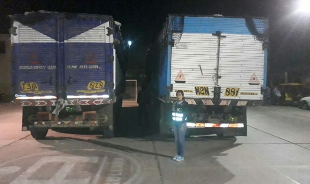 ERP. La Policía Nacional de Perú de Sullana intervino dos camiones de placas T3Q-878 y M2N-881 los cuales transportaban 9 mil sacos de nylon de procedencia extranjera y que eran ingresados al país sin seguir el procedimiento regular y del pago de impuestos que corresponde. El hecho ocurrió cuando efectivos policiales del DEPINCRI PNP Sullana interceptaron los vehículos frente al Estadio Municipal del distrito de Salitral-Sullana.