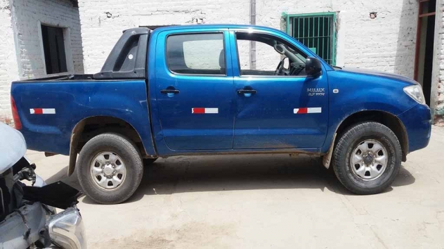ERP. La camioneta Toyota Hilux, de color azul y de matrícula EGA-275, perteneciente a la Gerencia Sub Regional Luciano Castillo Colonna (GSRLCC), fue abandonada por los delincuentes que perpetraron un sospechoso asalto en la referida institución estatal ligada al rubro de Obras.