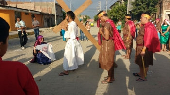Feligreses de Templo Divino Niño Jesús de Sullana escenifican vida, pasión y muerte de Jesús