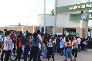 ERP. La Universidad Nacional de Frontera cumplió con el Examen General de Admisión 2017, este domingo 16 de abril. Desde muy temprano cerca de 300 postulantes llegaron hasta la puerta principal de universidad esperando se permita el ingreso a las aulas para iniciar la prueba. Esta Universidad se ubica en la ciudad de Sullana y oferta 4 carreras profesionales.