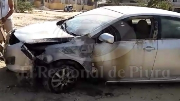 Desconocidos arrojan bomba molotov e incendian auto en Sullana