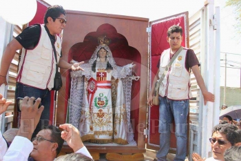 ERP. El peregrinaje de la Virgen de Las Mercedes de Paita, que viene recorriendo toda las regiones de Piura y Tumbes, tuvo una expresión festiva en la provincia de Sullana, uno de sus periplos, donde centenas de fieles le dieron la bienvenida y realizaron sus oraciones en señal de gratitud por esta decisión de llevar la imagen a su provincia.