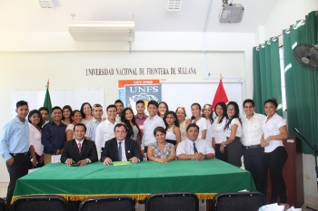 ERP. En Ceremonia realizada el día 04 de mayo del presente, en la Biblioteca Central, se llevó a cabo la imposición de pines con el fin de reconocer y a la vez comprometer a cada uno de los estudiantes de esta Embajada que vienen dejando en alto el nombre de la Universidad Nacional de Frontera, Alma Mater de Sullana.