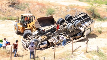 ERP. La autopista del Sol pudo ser el escenario de una desgracia mayor, al despistarse y volcar de la vía una cámara frigorífica fletada con productos hidrobiológicos. El accidente ocurrió en el kilómetro 1030 en las inmediaciones de un conocido burdel de Sullana y una chatarrería local.