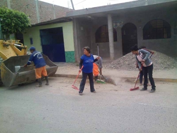 Bellavista. Trabajos de desarenamiento de las principales calles del distrito de Bellavista realizó ayer personal de limpieza pública de la municipalidad distrital contando con el apoyo de un cargador frontal y volquete para el traslado de la basura y otros desechos.