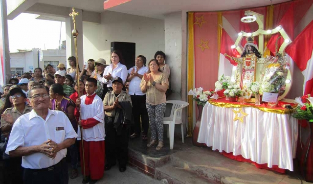 Trabajadores de la municipalidad del distrito de Bellavista rindieron un sentido homenaje a la “Virgen de las Mercedes”, tras la celebración de la misa en su honor y el inicio del recorrido procesional en horas de la tarde de hoy.