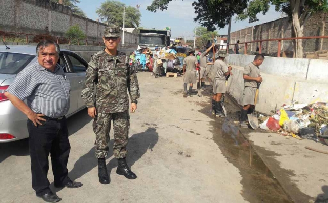 Las labores se realizaron en diferentes sectores como el dren Canchaque y calle Teniente Miguel Cortés, los mismos que fueron supervisados por el General de Brigada Gilberto Alvarez Villalobos, Comandante General de la Primera Brigada de Caballería y elcalde distrital, quien puso a disposición maquinaria para la recolección de desmonte, maleza y basura acumulada por malos vecinos que arrojan en el lugar convirtiéndolo en centro de acopio.