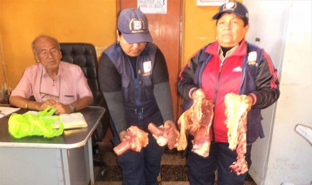 La intervención se produjo al promediar las ocho de la mañana del día de hoy, a cargo de la policía municipal, personal de fiscalización y el administrador del mercado Víctor Flores Li, quienes dieron un duro golpe a los comerciantes inescrupulosos que sin ningún reparo venden carne de equino de dudosa procedencia que pone en peligro la vida y salud de quienes la consumen.