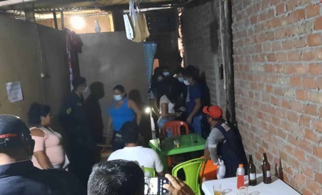 Asimismo, en la calle Leonardo Ortiz del sector Andrés Lama Peña, funcionaba un bar clandestino a puertas cerradas, donde se pudo comprobar la presencia de cinco parroquianos en compañía de tres féminas, contraviniendo las medidas de bioseguridad, los clientes consumían cerveza sin guardar ningún tipo de distancia, haciendo del lugar un foco de contagio y propagación del Covid-19. El local no contaba con licencia de funcionamiento ni mucho menos el certificado de defensa civil, imponiéndosele una multa de S/ 1,320 soles – correspondiente al 30% de la Unidad Impositiva Tributaria (UIT).