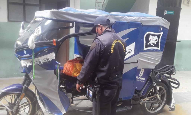 Al promediar las 12.30 del mediodía de ayer, los efectivos del serenazgo divisaron la mototaxi por la calle Bernal del asentamiento Esteban Pavletich, sin embargo, el conductor al notar la presencia de los agentes del orden, dejó el vehículo menor e ingresó a una vivienda, logrando huir por la parte posterior de la casa.