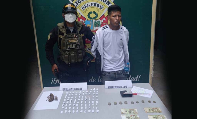 Se trata de Cristhian Junior Silva Arámbulo (21) a quien se le encontró en el bolsillo de su bermuda una bolsa con 25 quetes de Pasta Básica de Cocaína, quedando detenido en la comisaría de Bellavista.