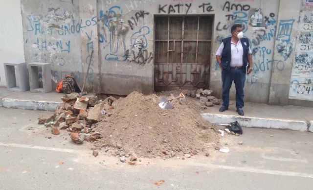La ingeniera Gabriela Gamboa Aguilar, quien se encontraba con personal de la Empresa Prestadora de Servicios Grau, fue advertida para reponer las veredas y pavimento que rompió en la transversal Huancabamba entre las calles Puno y Cajamarca para colocar sus conexiones de desagüe.
