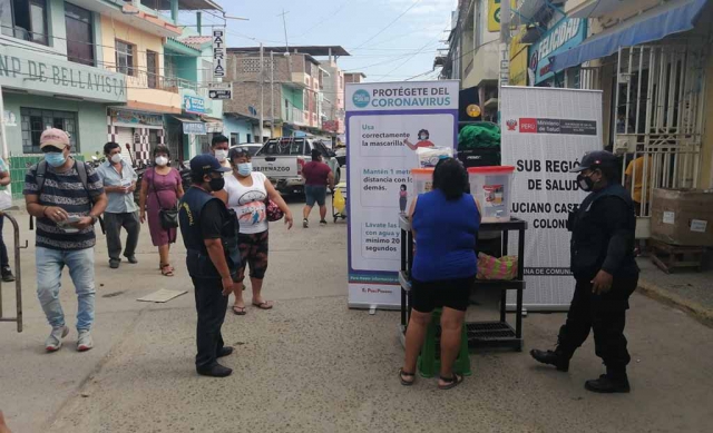 ERP. Con la objetivo de promover una cultura de prevención ante el rebrote del Coronavirus en el país, la municipalidad de Bellavista a través de la Comisión de Salud que preside el regidor Santos Sunción Viera, en coordinación con la Subregión de Salud Luciano Castillo Colonna, realizaron una campaña de sensibilización de lavado de manos al ingreso del principal centro de abastos.