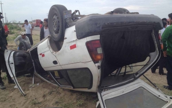 El vehículo en el que iba la docente, quedó volteado y con llantas hacia arriba, siendo necesario la presencia y participación de la Compañía de Bomberos de Sullana, quien rescató a la víctima y procedió a conducirla de inmediato al Hospital de Apoyo de Sullana para que se le brinde atención médica y descartar “trauma de vértebra medular”.