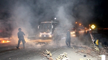 Los vecinos bloquearon la carretera colocando varias piedras y ramas de árboles a las que luego prendieron fuego perjudicando el desplazamiento de cientos de vehículos. Fue necesario la presencia de un contingente policial de la división policial de Sullana que lanzando bombas lacrimógenas y disparos al aire logró liberar la vía.