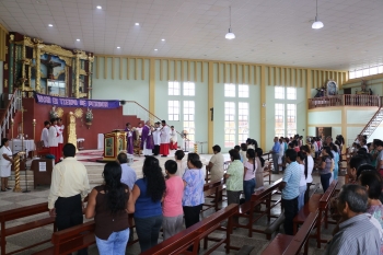 ERP. Monseñor José Antonio Eguren llegó al distrito de Querecotillo de la provincia de Sullana, para celebrar la Santa Misa en la Parroquia San Francisco Javier de Querecotillo (Sullana), Santuario del Señor de la Buena Muerte de Chocán. El Pastor piurano arribó a esta localidad para ofrecer la Eucaristía por las víctimas y damnificados de los desastres naturales y para pedirle al Señor de Chocán que nos conceda un tiempo sereno, sobre todo en estos momentos en que las lluvias han vuelto a arreciar y los caudales de los ríos amenazan con desbordarse.