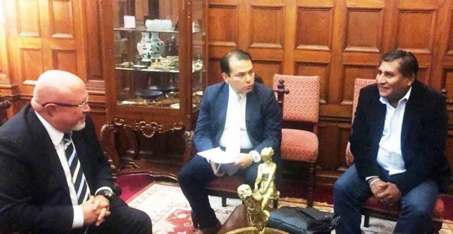 ERP. Con la finalidad de lograr importantes obras para su distrito, sostuvieron en la sala de Embajadores del Congreso, una reunión de trabajo, impulsada por el presidente de la comisión de Vivienda Dr. Víctor Aldrecht Rodríguez, conjuntamente con el ministro de Vivienda y Construcción, Carlos Bruce Montes de Oca y el alcalde del distrito de Miguel Checa, Pedro Zapata Sócola.