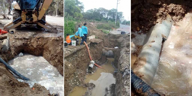 "Se están realizando los trabajos del cambio de tuberías de PVC de 12 pulgadas. Una vez culminadas las labores, se restituirá el servicio en los sectores afectados", sostuvo Kanty Flores Palacios, Jefe Zonal de Sullana de la EPS Grau.