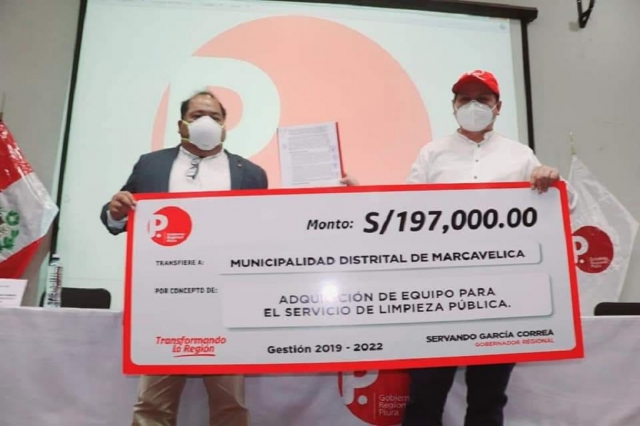 La entrega del cheque respectivo se gestó en la sede del Gobierno Regional Piura, a través del gobernador regional Servando García Correa, quien lo extendió al alcalde distrital Augusto Chiroque Nunura. Tal como consta en el mismo, el fin es concreto: “Adquisición de equipo para el servicio de limpieza pública”
