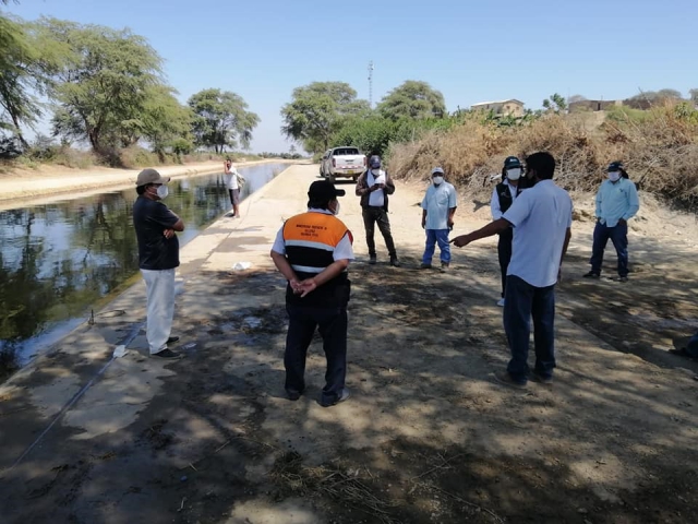 Esta tarea estuvo a cargo del alcalde distrital, Augusto Chiroque Nunura, en compañía de su equipo técnico conformado por los ingenieros César Correa, Alexander Juárez y Luis Alberto Lazo, y los funcionarios de la Autoridad Nacional del Agua, ingenieros Salomón Vidal y Segundo Gonzales.