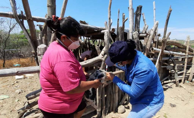 El funcionario edil, en compañía de la médico veterinaria de Senasa, Ana Vázquez Heredia, recorrieron los domicilios de las productoras, la cuales recibieron orientación técnica sobre la aplicación de productos médicos de desparasitación y suplementos para el correcto crecimiento de sus animales.