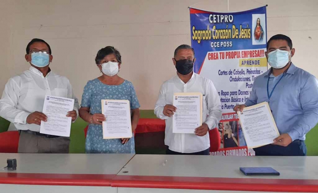 El director del Cetpro "Sagrado Corazón de Jesús", Prof. Jimmy Litano Olivares, reconoció la voluntad política del alcalde de Querecotillo de preocuparse por mejorar las capacidades de su población, al suscribir este convenio que permitirá otorgarles 100 becas para que puedan seguir los cursos de computación, confección de ropa, corte de cabello, pastelería y construcciones metálicas, cuyas clases serán virtuales y gratuitas.