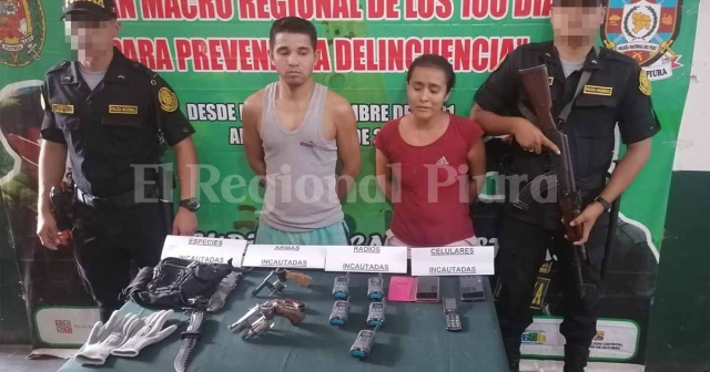 ERP/C.Chávez. Tras un exitoso trabajo de inteligencia, efectivos policiales de la comisaría del distrito de Querecotillo, lograron capturar a una pareja en el interior de un taller mecánico donde se les incautó armas de fuego que serían usadas para cometer asaltos.