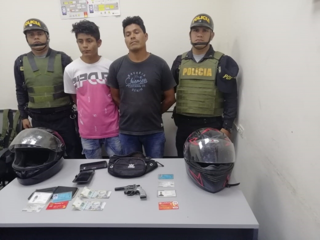 ERP. Personal policial intervino y detuvo a presuntos integrantes de la banda delincuencial ‘Los Nole’ de Santa Elena del distrito de Querecotillo, quienes portaban armas de manera ilegal. Se trata de Jhon Sianer Nole Rivera (26) y Ángel Benito Sabalú García (28) por encontrarse implicados en la Comisión del Delito contra la Seguridad Pública- Tenencia Ilegal de Arma de Fuego.