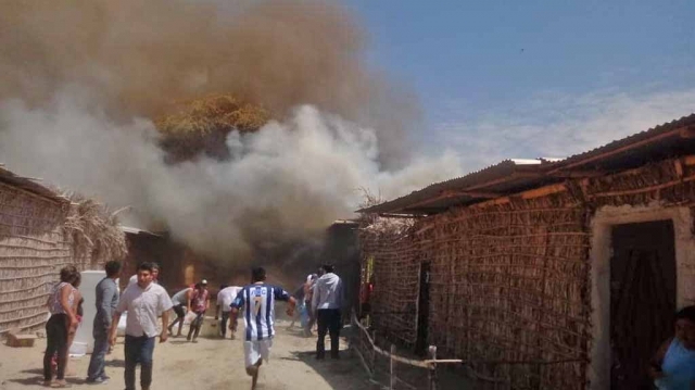 ERP. Un voraz incendio ocurrido esta tarde en el sector oeste de la provincia de Sullana, dejó en escombros un total de ocho viviendas y decenas de personas damnificadas, se informó.